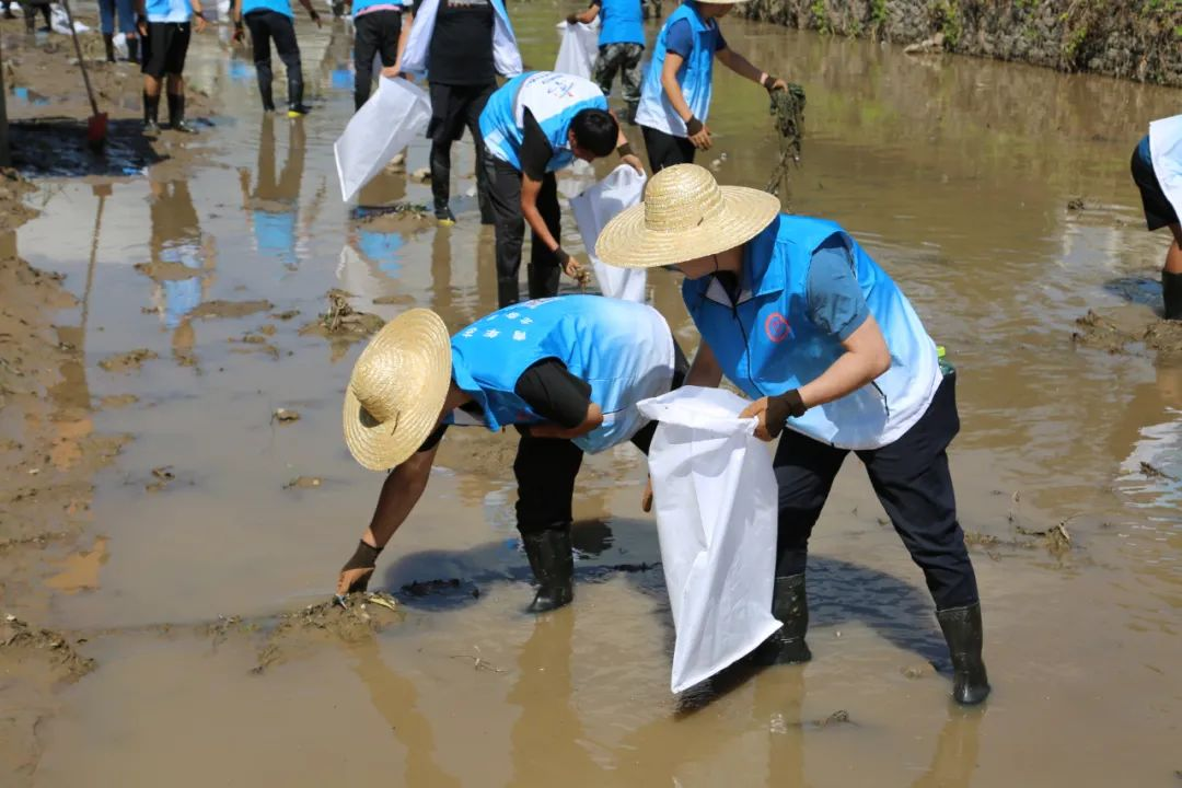 清淤现场,青年志愿者们手拿铁锹、铁桶,穿着雨鞋在闷热的天气中进行作业,对河道及沿线绿化带垃圾进行“地毯式”清理、“精细化”作业,实现河中、岸上、河坡、绿化带等范围整洁干净,争取让居民生活、交通出行、用水排水等尽快地恢复正常,尽快的消除灾情给当地居民带来的影响。