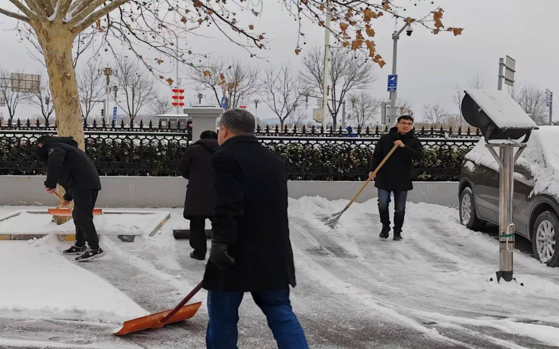 公司机关组织党员干部职工对公司院内及“门前三包”范围内人行横道等重点部位积雪进行清理。